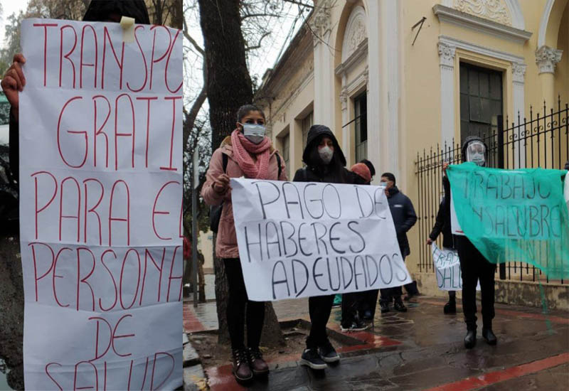 Los enfermeros contratados por la pandemia reclaman que todo el trabajo está recayendo sobre sus hombros y que son los peores remunerados. Manifestaron que de los seis meses que llevan en actividad sólo cobraron un sueldo y la suma es de menos de 25 mil pesos.